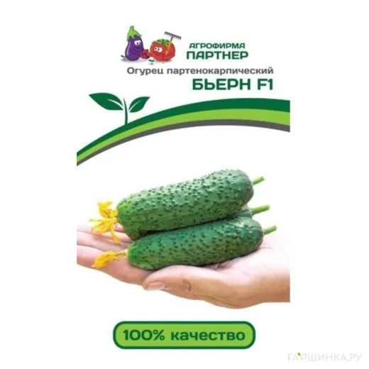Огурец Бьерн F1 партенокарпический 5 шт. Семена Партнер - Раннеспелый, партенокарпический гибрид женского типа цветения. От всходов до начала плодоношения 37-39 дней. Растение с мощной корневой системой, среднеплетистое, с короткими боковыми побегами. Высокую продуктивность определяет букетный тип цветения - до 4 завязей в узле. Зеленцы выровненные, тёмно-зелёного цвета без полос, хорошо ошипованные, длиной 10-12 см. Гибрид характеризуется отменным внешним видом и вкусовыми качествами, а также интенсивной отдачей урожая в течение 2-х месяцев выращивания. Подходит для всех видов переработки и употреблению в свежем виде. Гибрид устойчив к кладоспориозу, к мучнистой росе, вирусу обыкновенной мозаики огурца. Плотность посадки 4 растения/м². Урожайность свыше 12,0 кг/м².