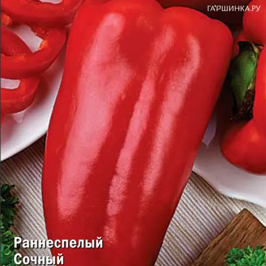 Ранний, толстостенный, отличный вкус. Раннеспелый сорт. Для открытого грунта и пленочных теплиц. Период от всходов до начала созревания 95-115 дней. Растение компактное, среднерослое. Плод сладкий, сочный, конусовидной формы, глянцевый, в технической спелости светло-зеленый, в биологической - красный. Масса плода 90-120 г, толщина стенки 5-6 мм. Великолепно подходит для потребления в свежем виде, фарширования, консервирования и замораживания.
