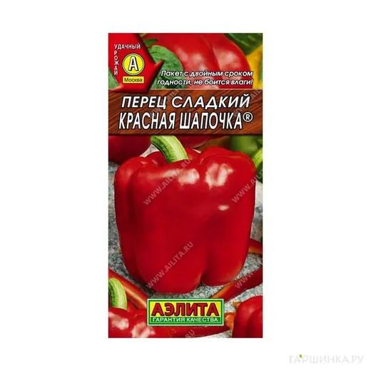 Перец Красная шапочка 0,2 г ЦП - Раннеспелый, высокоурожайный сорт (период от всходов до технической спелости 110-115 дней). Предназначен для выращивания в открытом и защищенном грунте. Растения полуштамбовые, высотой 70-80 см, одновременно завязывает 6-8 плодов. Перцы кубовидные, крупные, массой 200-250 г, толщина стенок 7-8 мм. Вкус отличный, мякоть сладкая и сочная. Прекрасно подходит для потребления в свежем виде, любой кулинарной обработки и всевозможных зимних заготовок. Сорт устойчив к недостаточной освещенности и пониженным температурам. Урожайность высокая, 9-10 кг/ м2.