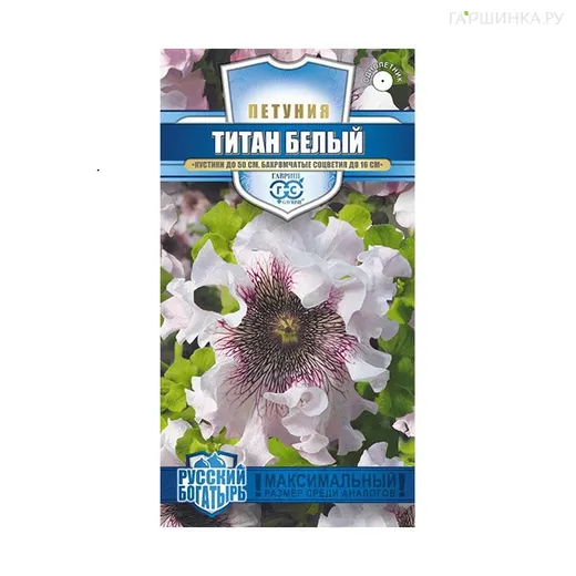 Петуния Титан Белый бахромчатая, 10 шт проб - раннецветущая, стильная, крупноцветковая, гибридная петуния. Эффектный, быстрорастущий однолетник. Куст каскадной шаровидной формы, с сильным ветвлением, побеги свисающие, стелющиеся 0,50 м высота, диаметр 0,50 м . Размножается семенами, высаживаются в открытый грунт, при температуре почвы +19-20 °C, всходы появятся на 14- 20 день, заделывать семена рекомендуется в глубину 0,2 см. Возможно выращивание через рассаду, высевать семена нужно под стекло в конце февраля, в открытый же грунт рассада высаживается в мае, на расстоянии 25-35 см. Лист некрупный, зеленый. Цветок воронковидный, крупный 16 !!! см, расположен над листьями, немахровый, белый, бахромчатый. Цветение суперобильное, продолжается до наступления заморозков. Используется для украшения балконов, подходит для выращивания в вазонах, для бордюров, рабаток.