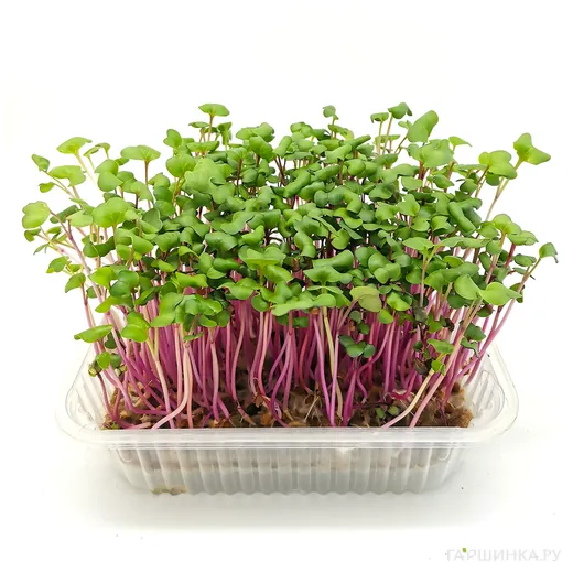 РЕДИС РЕД КОРАЛ Сочная и упругая микрозелень слегка острая, с приятным вкусом. Источает аромат свежего редиса. Микрозелень редиса содержит большое количество витаминов и минеральных веществ, эфирные масла, тиамин, рибофлавин, каротин. ВСХОДЫ ЧЕРЕЗ 5 ДНЕЙ.