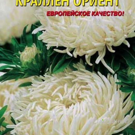 Астра Ориент Краллен 0,3 г, Плазменные семена - Среднего срока цветения. Куст колонновидный, высотой 65-75см, формирует несколько упругих прочных цветоносов. Соцветия плотные, махровые, чистой белой окраски, диаметром 10-12 см, состоят из длинных, немного закрученных по длине в тонкие трубки и красиво завитых по спирали язычковых цветков, закрывающих небольшой диск из мелких желтых трубчатых цветков. Астры этой серии великолепны для групповых посадок и срезки.