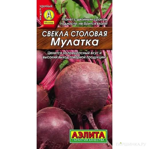 Свекла Мулатка столовая 2гр БП - Среднеспелый сорт. Период от всходов до уборки урожая 125-130 дней. Корнеплоды округлые, гладкие с отличными вкусовыми качествами. Масса 250-360 г. Мякоть нежная, сочная, темно-бордового цвета, без колец. При тепловой обработке не теряет цвет. Рекомендуется для использования в кулинарии и зимнего хранения.