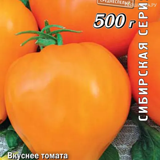 Абрикосовая окраска, вкуснее «Бычьего сердца». Среднеспелый сорт для выращивания в пленочных теплицах. Период от всходов до начала созревания 105-110 дней. Плод сердцевидной формы, слегка ребристый, абрикосово-оранжевой окраски массой 350-500 г (до 800 г), вкус отличный. Для приготовления соков и свежего потребления.