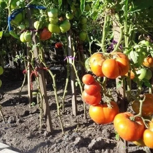 Плоды красные, плоскоокруглые, до 700 г, мясистые, очень вкусные и ароматные. Салатный сорт.