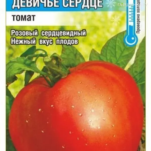 Томат Девичье сердце 20 шт - среднеранний крупноплодный детерминантный сорт. Рекомендован для открытого грунта и пленочных теплиц. Срок созревания около 114 дней. Куст до 1 м высотой. В условиях короткого сибирского лета дает стабильные урожаи зрелых томатов в открытом грунте, плоды транспортабельные, хорошо хранятся и дозариваются.