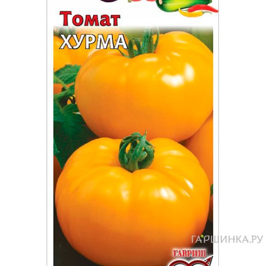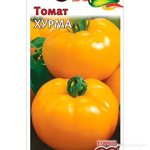 Томат Хурма, 0,1 г - среднеспелый, детерминантный сорт для открытого и закрытого грунта, высота 1 м. Всходы\плодоношение 110-120 дней. Плоды плоскоокруглые, ребристые 250 грамм. Урожайность высокая, вкус хороший.
