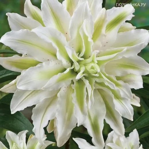 Лилия Серен Энджел восточная махровая/ 2 шт Высота 90-100см. Цветок махровый бело-кремовый, диаметром 17-20 см.