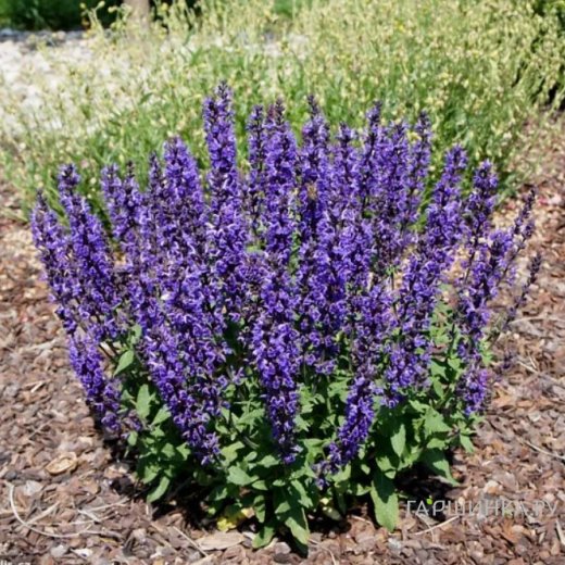Шалфей (сальвия) дубравный Мерло Блю - компактный и аккуратный кустик вырастает до полуметра в высоту. В июне-августе зацветает обильным цветением лавандово-фиолетового цвета, которое располагается на высоком цветоносе и имеет колосистую форму. Высаживать необходимо на солнечных места, также допускается полутень. Поливать нужно умеренно и регулярно в жаркую погоду. Сильный аромат. Зона 4.