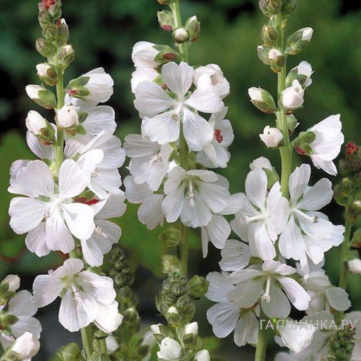 Сидальцея белоснежная - многолетник с цветками диаметром 2 см, белого цвета, в колосовидном соцветии. Стебель прямой, разветвлённый. Стеблевые листья 5-7-раздельные.