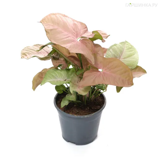 Сингониум Ред Харт - эффектный и привлекательный сингониум, отличающийся необычным светло-лососевым окрасом. Обратная сторона листовых пластин - насыщенно - зеленого цвета. Листовые пластины глянцевые, копьевидные, прожилки разветвлённые, немного утопленные в листовые пластины, поэтому листья выглядят рельефным (гофрированным).
