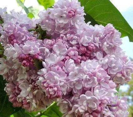 Продавец: ИНН 350902477384Сирень Бель де Нанси махровая - Бутоны сирени Бэль де Нэнси (Belle de Nancy) карминно-розовые; цветки: лиловато-розовые с серебристым оттенком, переходящие в светло-голубовато-лиловые, среднего размера, диаметром до 2 см, махровые - из двух-трех слегка раздвинутых венчиков, ароматные; верхние лепестки овальные, закручиваются внутрь. Соцветия крупные, рыхлые, многоверхушечные, из двух-трех пар метелок, отдельные метелки ширококонические, достигают размеров 25 X 18 см. Листья темно-зеленые, крупные, широкие. Кусты средней высоты, широкие; побеги серые с заметными чечевичками. Цветет обильно, в средние сроки, в течение 15-20 дней.