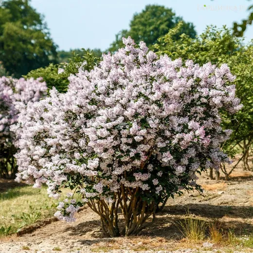 Сирень Мисс Ким - листопадный, декоративный, полураскидистой формы. Куст прямостоячий, побели сильные, форма округлая,1.5м. Лист темно-зеленый, сердцевидный, осенью - желтые. Цветок в форме розочки розово-фиолетово-пурпурный, махровый. Соцветие метелка крупная, широкопирамидальная, обладает легким ароматом.