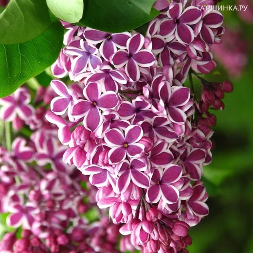 Сирень Сенсация Сорт уникален своей двухцветной окраской, нехарактерной для цветов сирени. Появился на свет от сорта Гуго де Фриз в результате спортивных мутаций под контролем селекционера из Голландии Д.Е.Маарса в 1938 году. Куст средних размеров, несколько раскидистый. В высоту может достигать двух-двух с половиной метров, в ширину до трех метров. Листья типичные для сиреней, сердцевидные и темной зеленой окраски. Бутончики насыщенно-пурпурные. Распустившиеся цветы пурпурные с красным тоном. По краю лепестков идет яркая, достаточно широкая и очень контрастная белая кайма. Форма цветочков простая, в диаметре размеры венчика 22 миллиметра. Лепестки немного удлиненные, с округлой вогнутой вершинкой, что придает цветку скульптурную рельефность. Метелки узкие пирамидальной формы, цветы в них расположены не очень плотно. В одном соцветии собрано обычно от одной до двух пар метелок высотой от 18 до 20 и шириной до 8 см. Сорт позднецветущий. В средней полосе может цвести с конца мая до середины июня. Аромат сирени Сенсэйшен (Sensation) слабый, очень приятный, не одурманивающий.