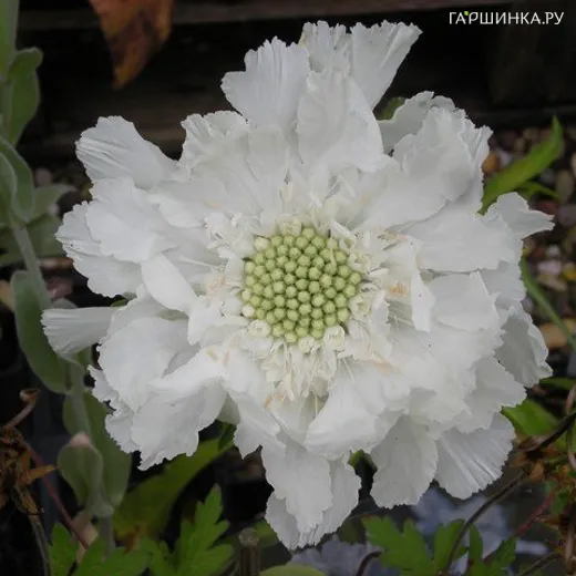 Скабиоза Фама Вайт - многолетнее растение, скабиоза кавказская. В высоту достигает 50 см. Стебли прямые, прочные, опушенные. Прикорневые листья линейно-ланцентные, стеблевые - перисто-рассеченные, сизо-зеленые. Цветки белые, собраны в крупные, пушистые, головчатые соцветия, окруженные оберткой из прицветных листьев. Тычинки длинные, эффектно смотрятся на фоне лепестков. Цветет в июне-июле, 30-35 дней. Зона зимостойкости: 4 (-35 ° С).