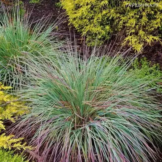 Схизахириум метельчатый Стендинг Овейшен - многолетнее растение, которое демонстрирует прочные вертикальные стебли и прекрасное цветовое шоу оттенков листвы от сине-зелёного в начале сезона, с красными штрихами – в середине сезона до бронзово-оранжевого осенью. Цветёт в августе. Высота 0,6-1,2 м. Цветки пурпурно-бронзовые собраны в соцветия до 8 см. За цветами следуют пучки пушистых серебристо-белых семенных головок, которые привлекательны и часто сохраняются до зимы. Является фаворитом для натуральных ландшафтных композиций. Зона 3. Неприхотлив. Хорошо переносит глинистые почвы и периодические затопления, мирится с бедными почвами. Для успешного выращивания этого злака требуется полное солнце и хороший дренаж.