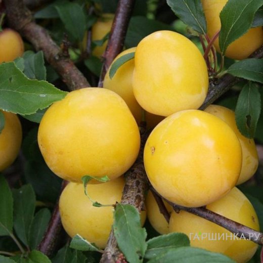 Слива Яичная Желтая - самобесплодный, поздний сорт, требуются опылители. Дерево, высота 5,0 м, крона овальная, приподнята, массивные ветви. Окраска округлых, яйцевидных, плодов желтая, белесый налет, 50 гр, вкус хороший, мякоть ярко-желтая, волокнистая, сочная, плотность средняя. Урожайность высокая, ежегодная.