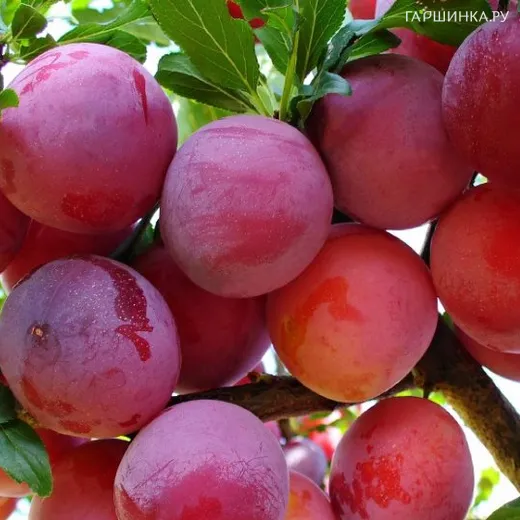 Слива Неженка - Дерево низкорослое, вырастает до 2,5 м. Среднезагущенная крона имеет шаровидную форму. Плоды среднекрупные, 24–34 грамма. Форма округлая, диаметр около 3,5 см. Окраска красная. Кожица среднеплотная, голая.