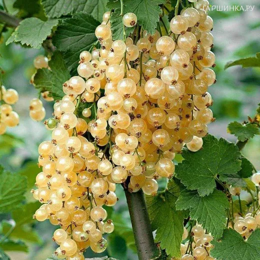 Смородина Виксне белая - Плоды имеют округлую форму и могут быть немного вытянутыми. Средний вес ягод составляет 0,6 г, но встречаются экземпляры, у которых этот показатель достигает отметки 0,9 г. Виксне выделяется высоким содержанием витамина С (концентрация достигает 37 мг на каждые 100 г). Даже полностью созревшие плоды хорошо держатся на кустах и не опадают. Собирать их следует кистями, поскольку при отрыве каждой ягоды можно повредить кожицу. Ягода отличается приятным ароматом и свежим, кисло-сладким вкусом. А также стоит отметить тонкую, но при этом прочную кожицу плодов и малое количество семян. Важно, что для этого сорта характерно повышенное содержание пектина (2,4%). Первые плоды молодое растение может дать уже на следующий после посадки год. Однако при этом не стоит ожидать более 2-3 кг урожая. Цветет Виксне в мае, а уже в середине июля плоды уже можно считать вызревшими.