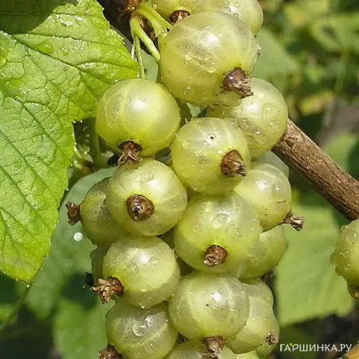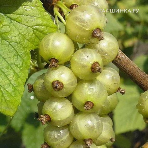 Смородина зеленая Снежная королева - среднепоздний сорт зеленой смородины. Куст среднерослый, среднераскидистый, крона густая. Листья большие, с заострёнными лопастями. Кисти длинные, по 15–20 ягод. Ягоды округлые, зеленовато-желтые, крупные, 1-1,3 г, с прозрачной плотной кожицей. Мякоть кисло-сладкая, с приятным легким ароматом. Высокоурожайный самоплодный сорт, устойчив к мучнистой росе, антракнозу, ржавчине, почковому клещу.