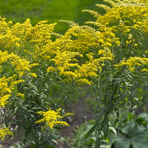 Золотарник (солидаго) Цитронелла - известный как Solidago 'Citronella', представляет собой многолетнее травянистое растение, привлекающее внимание своими яркими и обильными соцветиями. Это растение принадлежит к семейству астровых и является одним из самых популярных видов золотарника благодаря своей декоративности и неприхотливости. Жизненная форма золотарника солидаго Цитронелла – это травянистый многолетник, который отличается вертикальным типом роста. Его высота может достигать 80-100 см, что делает его отличным выбором для создания ярких акцентов в саду или на клумбе. Растение образует прямостоячие, крепкие побеги без шипов и колючек, что упрощает уход и обрезку.