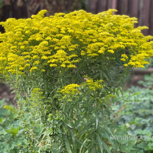 Золотарник (солидаго) Супер - это многолетнее травянистое растение, которое привлекает внимание своими яркими золотистыми соцветиями и способностью украшать сад в течение долгого времени. Это растение принадлежит к семейству астровых и известно своей выносливостью и неприхотливостью в уходе. Золотарник солидаго Супер отличается прямостоячими стеблями, которые могут достигать высоты до 0,6 метров. Его листья имеют ланцетовидную форму и насыщенный зеленый цвет, что создает эффектный контраст с золотистыми соцветиями. Соцветия представляют собой метелки, состоящие из множества мелких цветков, которые привлекают пчел и других опылителей, способствуя биоразнообразию в саду.