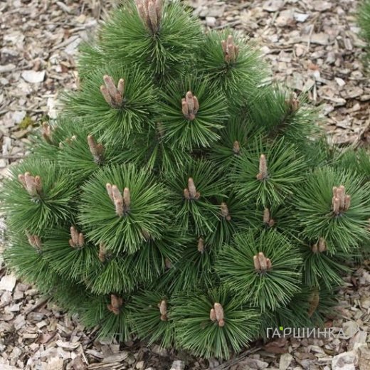 Сосна черная Хельга - вечнозеленый медленнорастущий хвойник. Ствол прямостоящий, прирост средний 10-15 см, растение, достигшее взрослого возраста, при выполнении условий благоприятных для выращивания 2,5 м. Крона густая, широконическая, самоформируется, с возрастом густая, объемная, не симметричная. Ветви равномерные, часто расположенные, отстоят от стволовых равномерно, серые, чуть шероховатые. Хвоя игловидная, жесткая, окраска зеленая, короткая, собрана в пучки, молодой прирост имеет более светлую окраску.