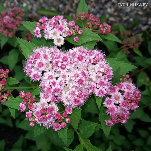 Спирея японская Спарклинг Шампань - Красивый кустарник. Высота этого многолетника варьируется от 0,8 до 1 м, при этом диаметр округлой и симметричной кроны достигает полутора метров.