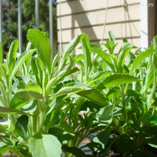 Стевия Свити - многолетнее невысокое ароматное растение. Хорошо адаптируется и гармонично растет на любой территории участка (солнце, полутень или тень). В природе достигает высоты – 60-80 см. Представляет собой очень сильно разветвленный кустик. Листья простые с парным расположением. Цветки белые, мелкие. Корневая система мочковатая, хорошо развитая. Выращивается на открытых участках или в городских условиях на мансардах и балконах. Стевия Свити является натуральным экологически чистым заменителем сахара. Её листья в 10-15 раз слаще обычного сахара. Секрет сладости заключается в том, что растение накапливает и содержит сложное вещество – стевиозид. В состав этого вещества входят глюкоза, сахароза, стевиол и другие соединения. В настоящее время, стевиозид – это самый сладкий природный продукт.
