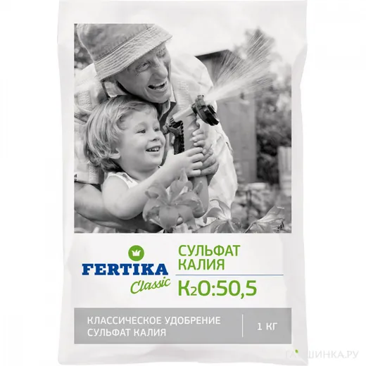 Минеральное бесхлорное калийное удобрение cульфат калия (K2SO4–50,5%) используется на различных типах почв (в т.ч. в условиях защищенного грунта), а также для комнатного и балконного цветоводства. Пригоден для всех способов внесения: основного (при перекапывании почвы весной или осенью), предпосевного (в рядки, борозды или лунки), а также для подкормки в течение вегетационного периода.