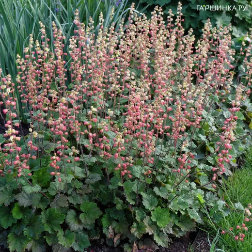 Теллима Рубра - образует густые заросли, с сочными листьями необычной формы. Листья похожи на тиареллу, к осени обретают красные оттенки. Цветоносы высотой до 60 см. Цветки кремовые с розовой каймой, концы лепестков мелко рассечены, что тоже кажутся опушёнными. Нужна рыхлая, дренированная, влажная почва. Рекомендуется выращивать под пологом густых деревьев и в бордюрах.