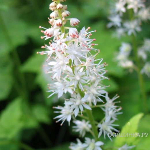 Тиарелла сердцелистная - Растение представляет собой куст с небольшими листьями и колосовидными соцветиями на тонких стеблях. Максимальная высота взрослого растения – 20-25 сантиметров.