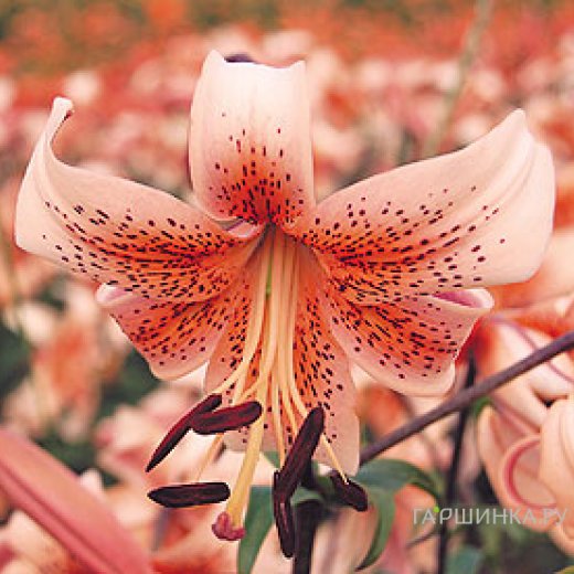 Лилия Тайгер Бейбиз тигровая /2 шт выделяется среди многих других сортов тигровых лилий своим потрясающим нежным персиковым окрасом. А постепенный переход от более светлых до более темных полутонов и наличие на лепестках темных крапинок придают этим цветкам особую декоративность. Высота: 120 см. Период цветения: июль-август.