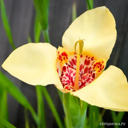 Тигридия Крем 10 шт - невероятной красоты растение с интересными цветками тигровой окраски. Цветки крупные, лепестки нежного сливочного оттенка эффектно контрастируют с яркой, рубиново-пятнистой сердцевинкой.