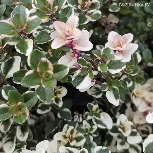 Тимьян блошиный Фоксли - многолетнее растение высотой 15-20 см. Листья зеленые, кончики могут быть белого или розового цвета.