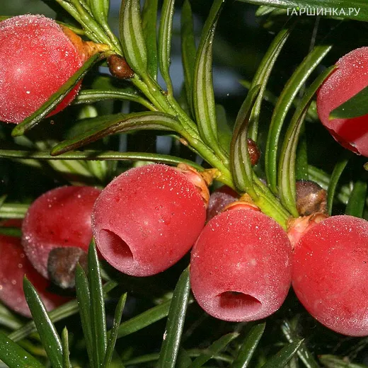 Тис ягодный - декоративный, вечнозеленый, медленнорастущий хвойник - природный долговечный полукарлик. Ветви пирамидальные, сильные, крона плотная, компактная, форма подушковидная. Побеги густые , жесткие, укороченные до 1,0 м. Хвоя линейная, игловидная, заостренная, ориентирована радиально, густо покрывает побеги, окраска темно-зеленая, 20-22 мм. Корни обильно ветвятся, сильные, распростертые. Хорошо переносит формирование и стрижку.