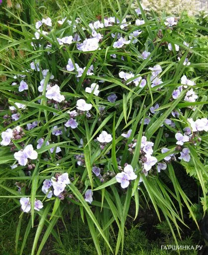 Традесканция Billberry Ice - компактный многолетник, цветы светло-сиреневые с темным центром. Размер: 35*35 см. Цветение: июнь-август. Зона зимостойкости: 3 (-40 / -34 °C)