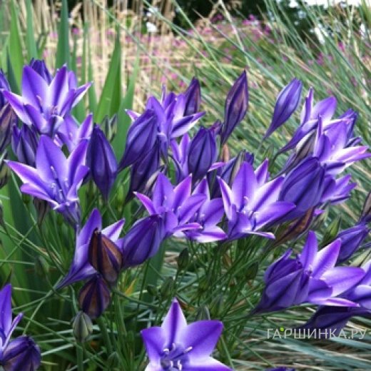 Трителейя Руди 5 шт - семейство Спаржевых. Травянистое, многолетнее растение 40 см. Лист линейный. Цветок колокольчатый, голубой, 8 см. Цветет в июне.