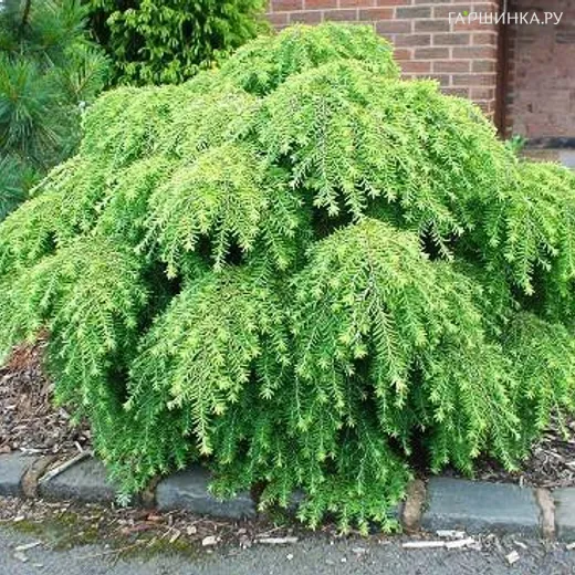 Тсуга канадская Джедделох - декоративное, медленнорастущее, хвойное растение - природный карлик. Побеги блестящие, до 0,5м, крона полушаровидная, распростертая, не симметричная. Хвоя чешуйчатая, светло-зеленая, не плотно прижата к побегам, очень мелкая, не колючая, легко поддается формированию и стрижке.