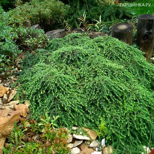 Тсуга канадская Коулс Прокстрэйт - медленнорастущая карликовая форма, которую обычно выращивают в качестве почвопокровного растения. Стелется по земле, как правило, со временем обнажаются голые ветки в центре. Серебристо-белая кора ветвей хорошо контрастирует с темно-зеленой игольчатой листвой. К 10-ти годам высота всего 10 см, ширина 80 см. Растения будут спускаться по склонам, расползаться по ровной поверхности, ползать по более мелким камням или переползать через край стены.