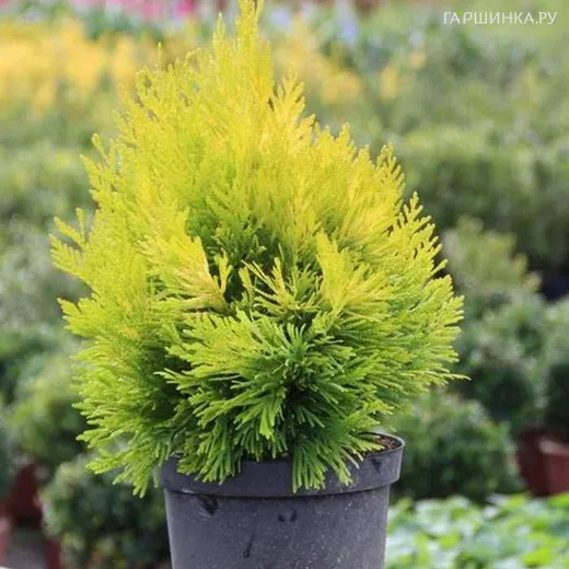 Туя складчатая Фореве Голди - хвойное растение. Взрослое растение, при благоприятных условиях выращивания имеет высоту 2.0 м, диаметр 1.0 м. Годовой прирост в среднем по высоте 5-7 см, один раз в год. Окраска летом светло-зелёная с желтоватым оттенком, осенью оранжево-красная, зимой золотисто-желтая. Крона коническая.