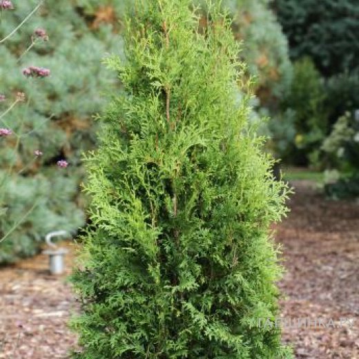 Со своими сочными зелёными хвоинками и классическим коническим силуэтом, эта туя вырастает до внушительных размеров, сообщая вашему саду тот самый желаемый объём и структуру. Станет прекрасным фоном для цветущих кустарников и многолетников, принося гармонию в любые композиции.