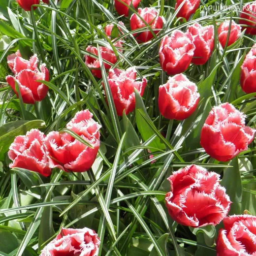 Тюльпан Канаста бахромчатый 5шт. - цветок насыщенно-алый с контрастной белой бахромой. Бахромчатые тюльпаны отличаются особой прочностью лепестков, и благодаря этому они особенно устойчивы к неблагоприятным погодным условиям и сильным ветрам. Превосходно держат форму в срезке. Также используются для выгонки и украшения клумб.