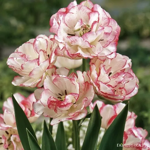 Тюльпан Белисия многоцветковый 4шт Чудесный сорт с широкими бокалами высотой и диаметром 8-10 см относится к классу Махровые ранние. Лепестки ярко-белые или цвета слоновой кости, с малиновой окантовкой и штрихами. Среднерослое растение формирует 3-6 цветков на прочных стройных цветоносах, расцветает в середине апреля.