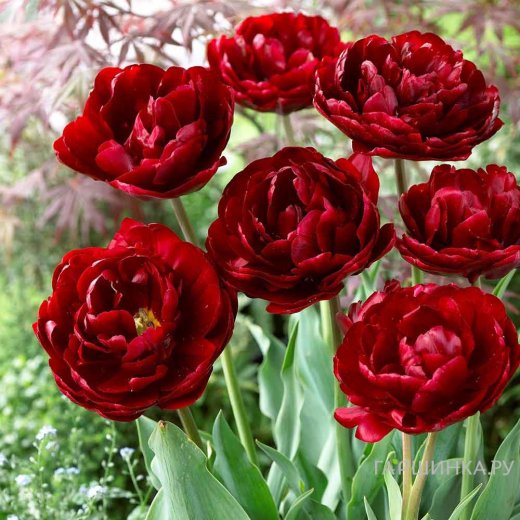 Тюльпан Анкл Том (Дядя Том) махровый 4шт - сорт высотой 45 см. Цветок махровый, пионовидный, бордово-красный с малиновым оттенком. Период цветения май.