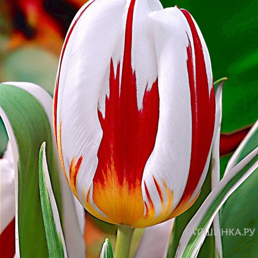 Тюльпан Карнавал де Рио простой поздний. Окунитесь в атмосферу карнавала в Рио-де-Жанейро! Кремово-белые лепестки с красными мазками по центру спинки.
