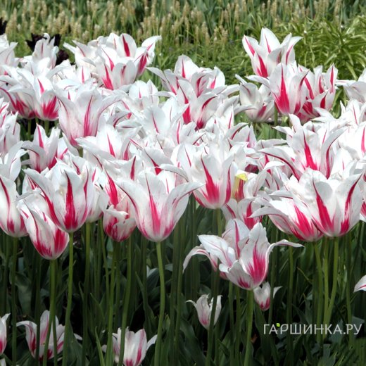 Тюльпан Мерилин лилиецветный 5шт. - сорт высотой 45 см. Цветок белый с красными прожилками, лилиецветный. Период цветения: апрель - май.