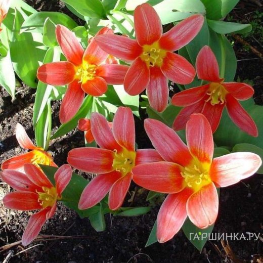 Тюльпан Шекспир 5шт имеет крупные удлиненные красные цветки с тонкой желтой каемочкой по краю лепестков. Листья у этого сорта с пурпурными штрихами.