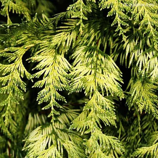 Туя Айриш Голд складчатая - Хвойное растение. Через 5 лет достигает высоты около 4 м. Максимальная высота взрослого растения до 7 м. Диаметр кроны 3 м. Хвоя декоративная, темно - зеленая, с золотистым напылением. Шишки продолговато-овальные, 10 - 12 мм длиной. Предпочитает светлые места. Почва обогащенная питательными веществами, супеси, болотистые либо глина. Зона морозостойкости 4.