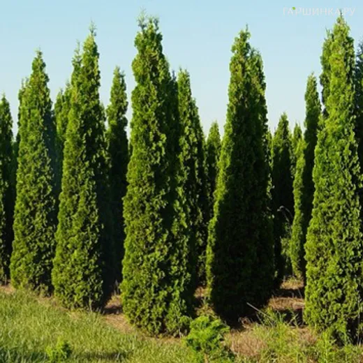 Туя западная Дегрут Спайр - красивый узкоколонновидный сорт западной туи, достигающий высоты до 3 м и диаметра до 0,7 м. Растет быстро. В 10 лет высота растения 2 м. Хвоя насыщенного зеленого цвета. Побеги слегка закручены, густо расположены, создают очень привлекательную структуру кроны.